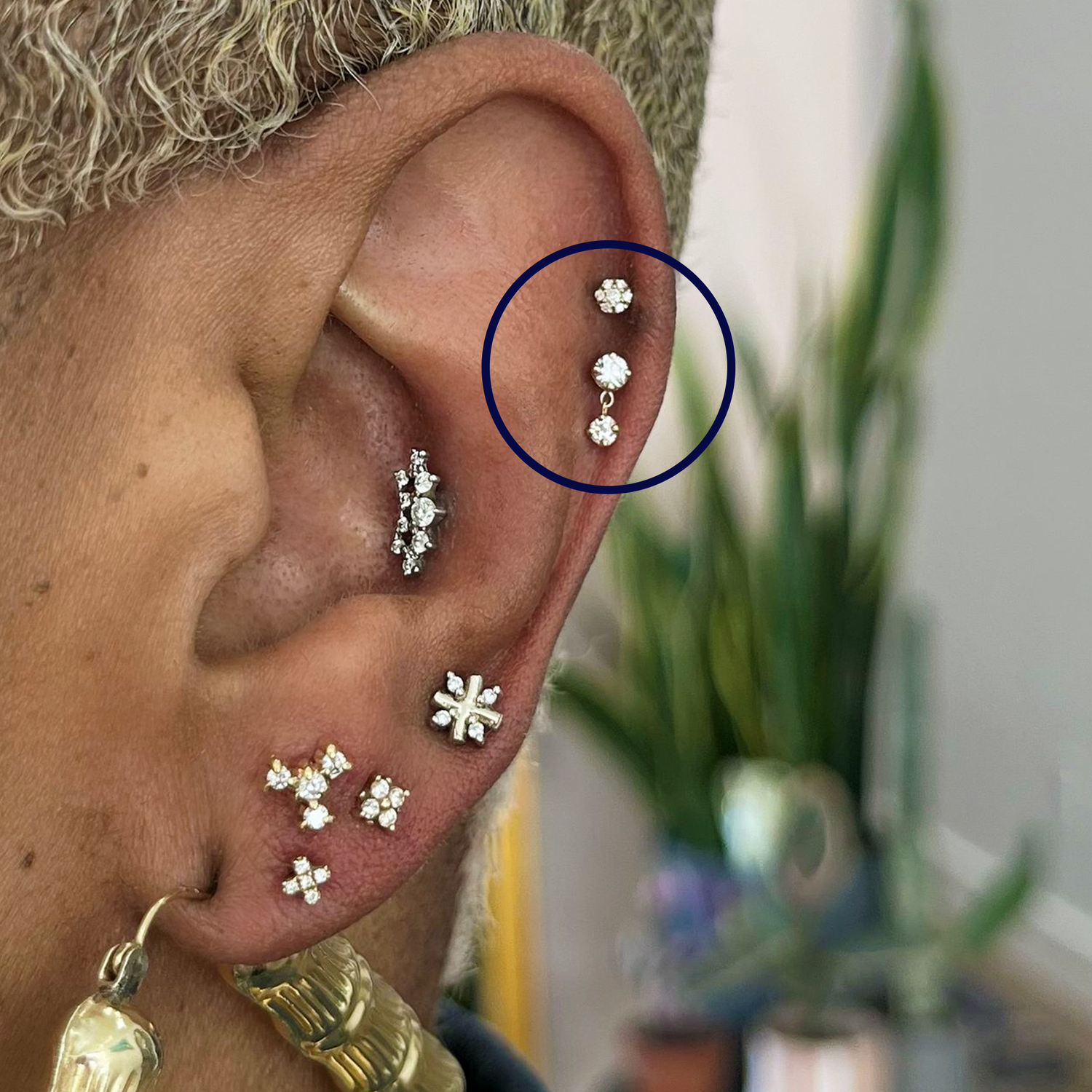 A helix piercing is a type of ear piercing that involves the upper cartilage of the outer rim of the ear, above your lobe.