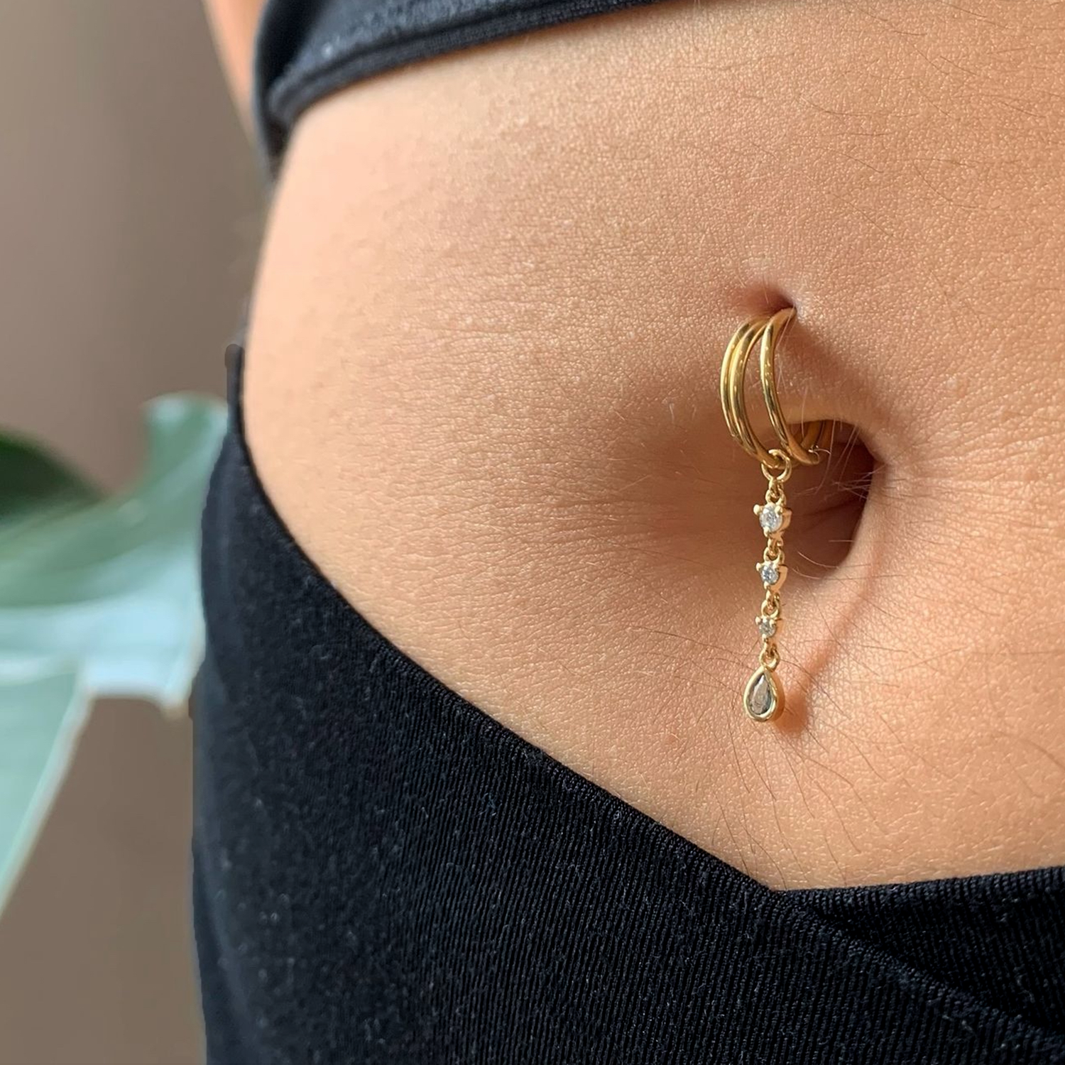 A navel piercing, also known as a belly button piercing, is a type of body piercing that is typically done in the fold of skin above the belly button.