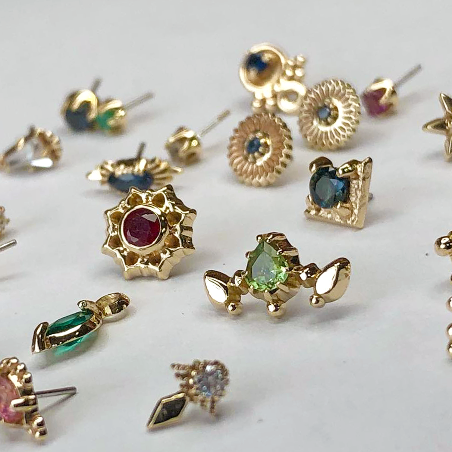 Handmade with love in Mexico City by Charly Pastrana, each piece from Sacred Symbols is packed with loving texture and a mix of vibrant gemstones. Pastrana's collection has become a studio favorite here at So Gold!
