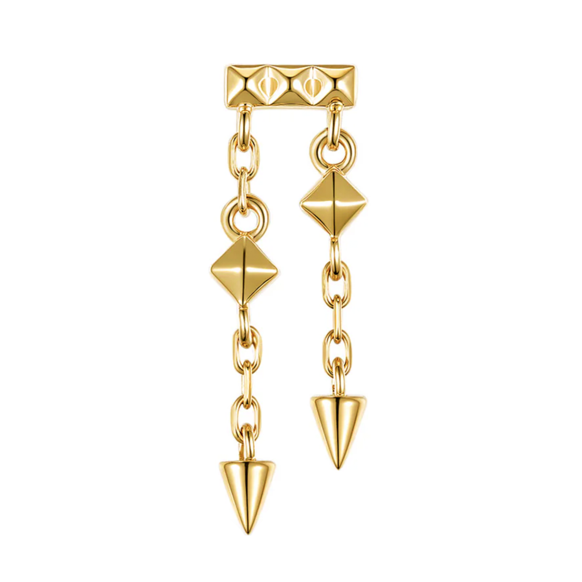 New in from Modern Mood, the Axl threadless end has two chain drops adorned with a pyramid stud motif throughout.