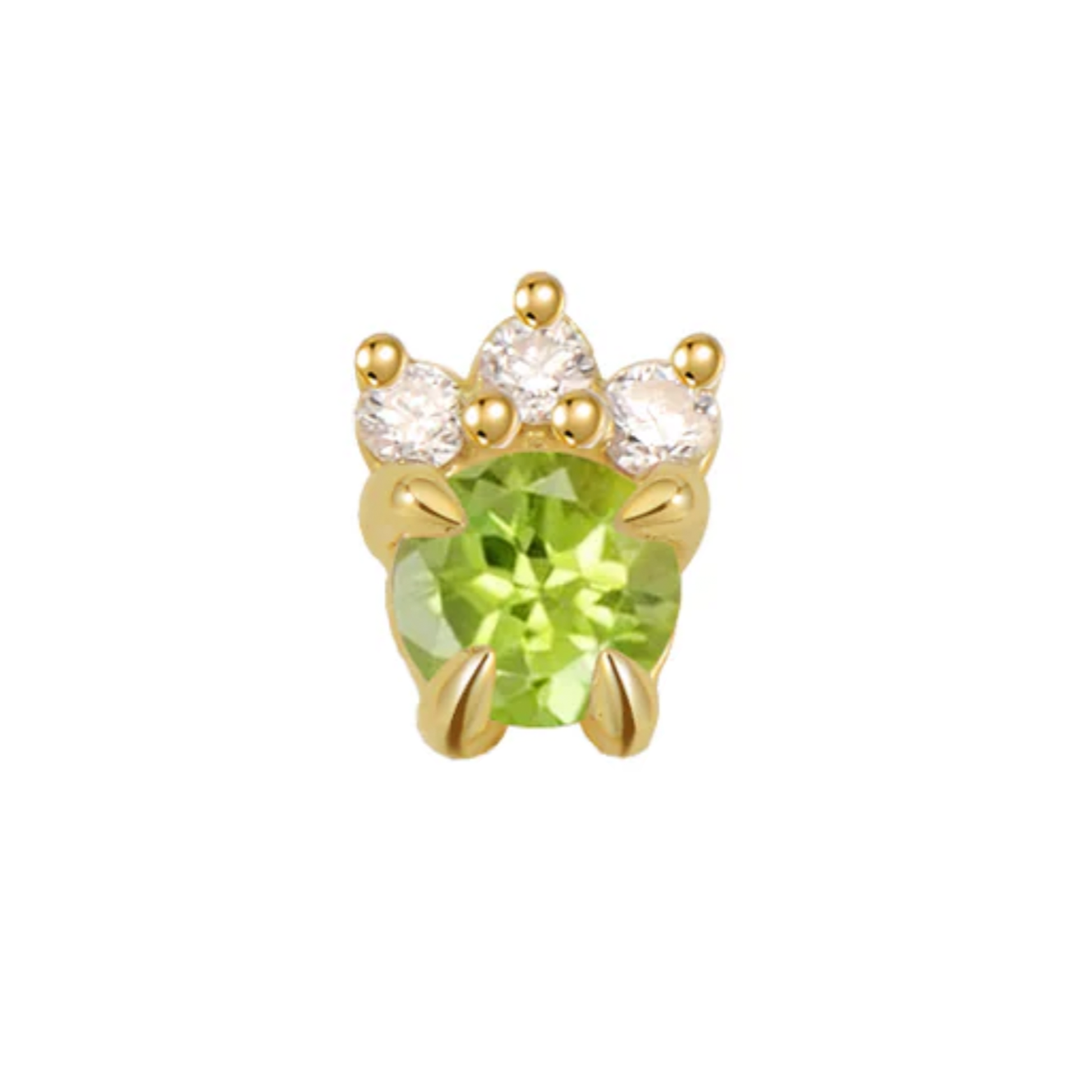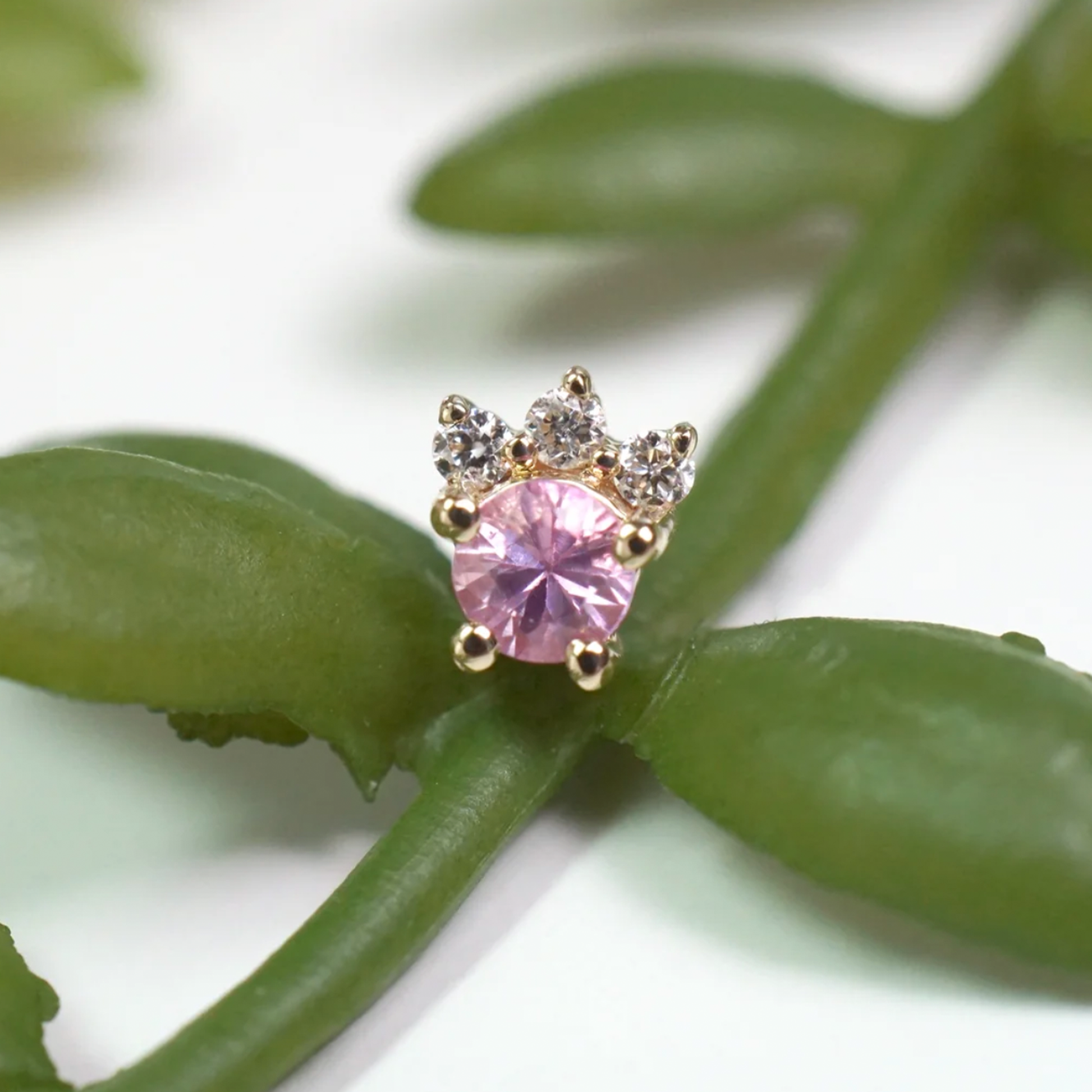 From Modern Mood, the Leia threadless end has a bright round gemstone center with a crown of three white diamonds.