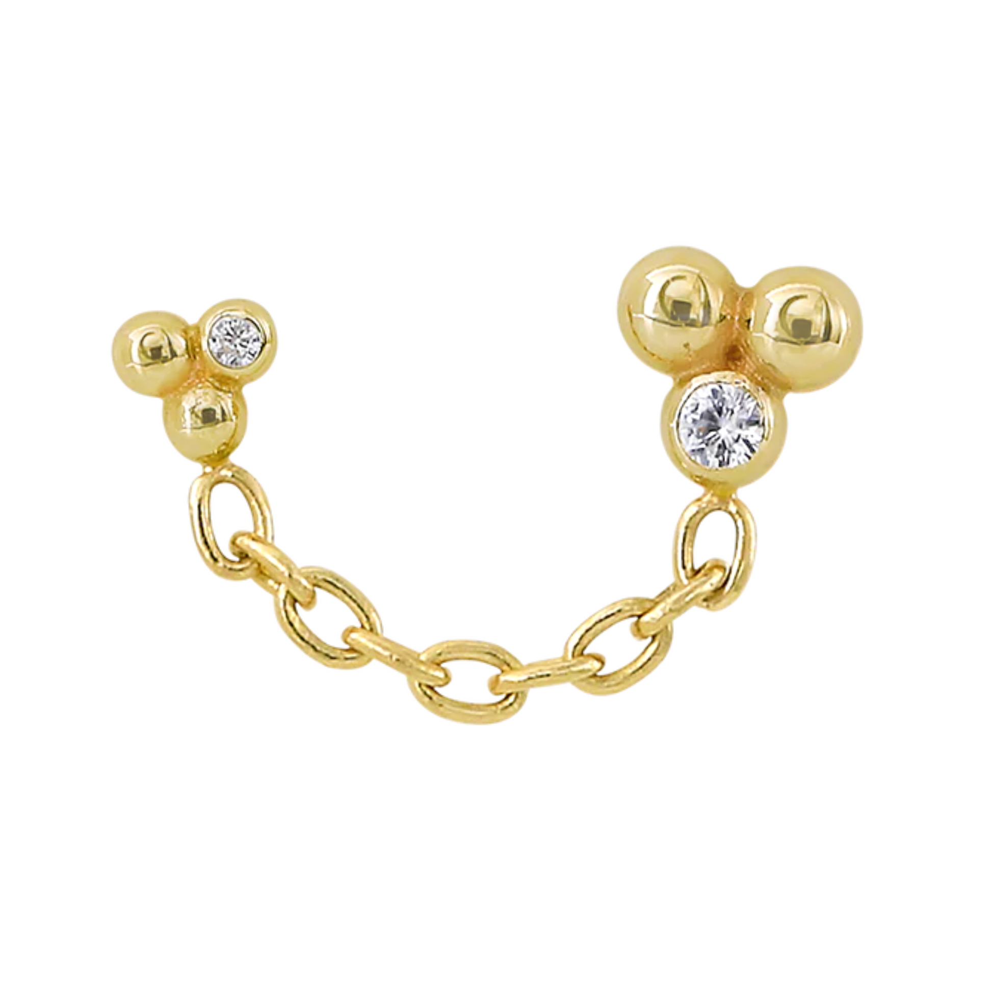 New in from Pupil Hall! The Little Secret Duplex end features two tri-bead cluster threadless ends with diamonds, connected by a 10mm long chain.