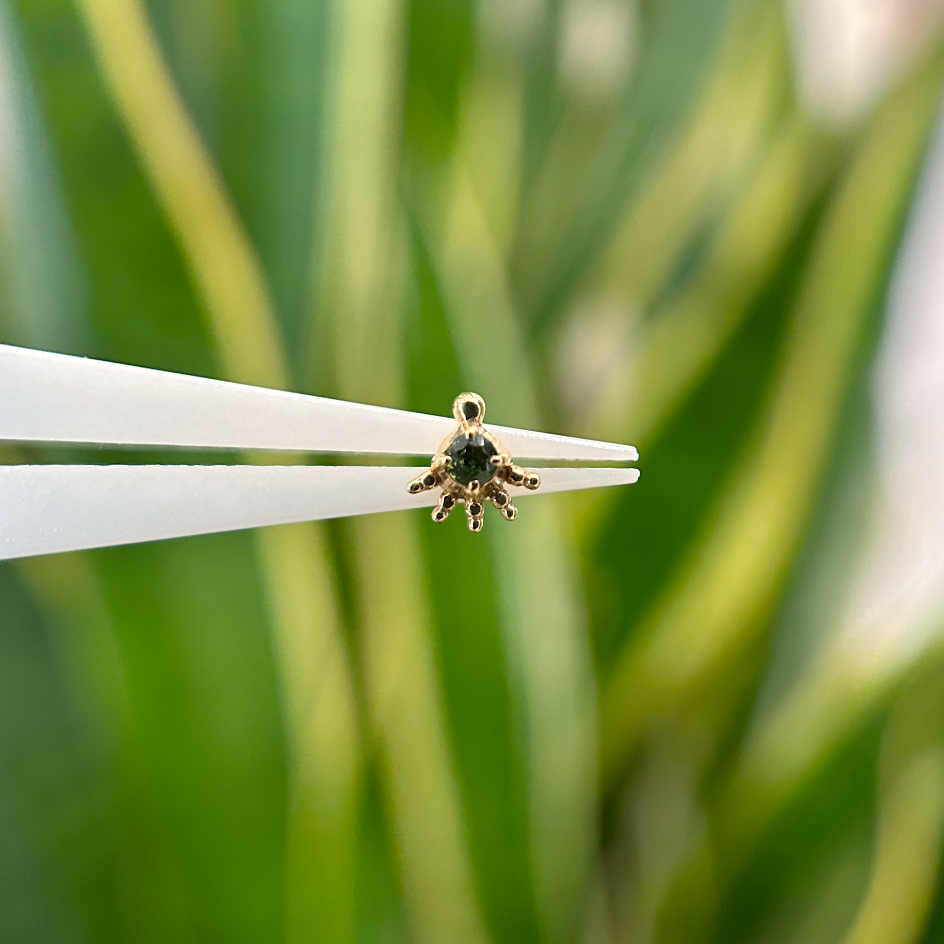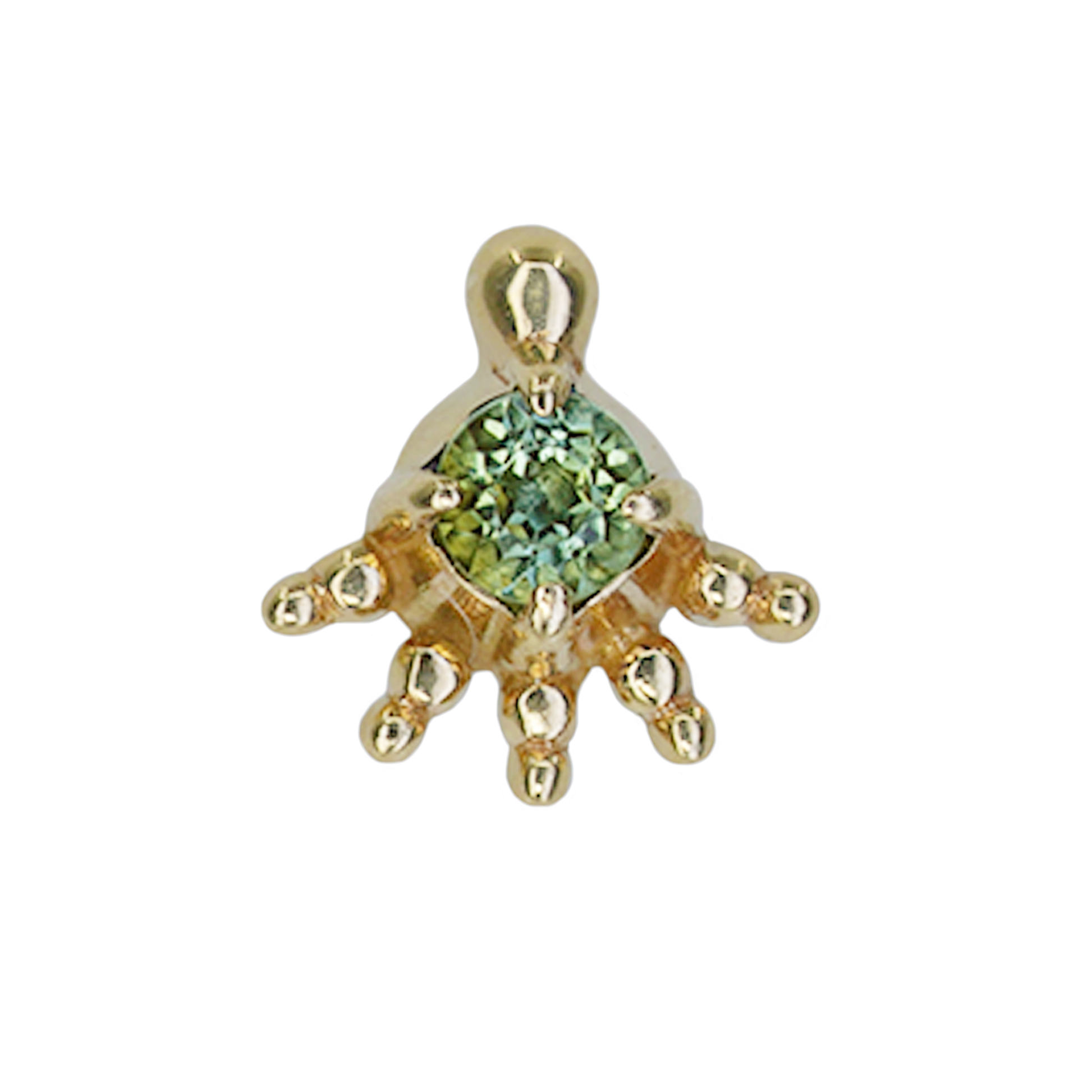 From Sacred Symbols, this beaded starburst threadless end features a light green tourmaline at its center.